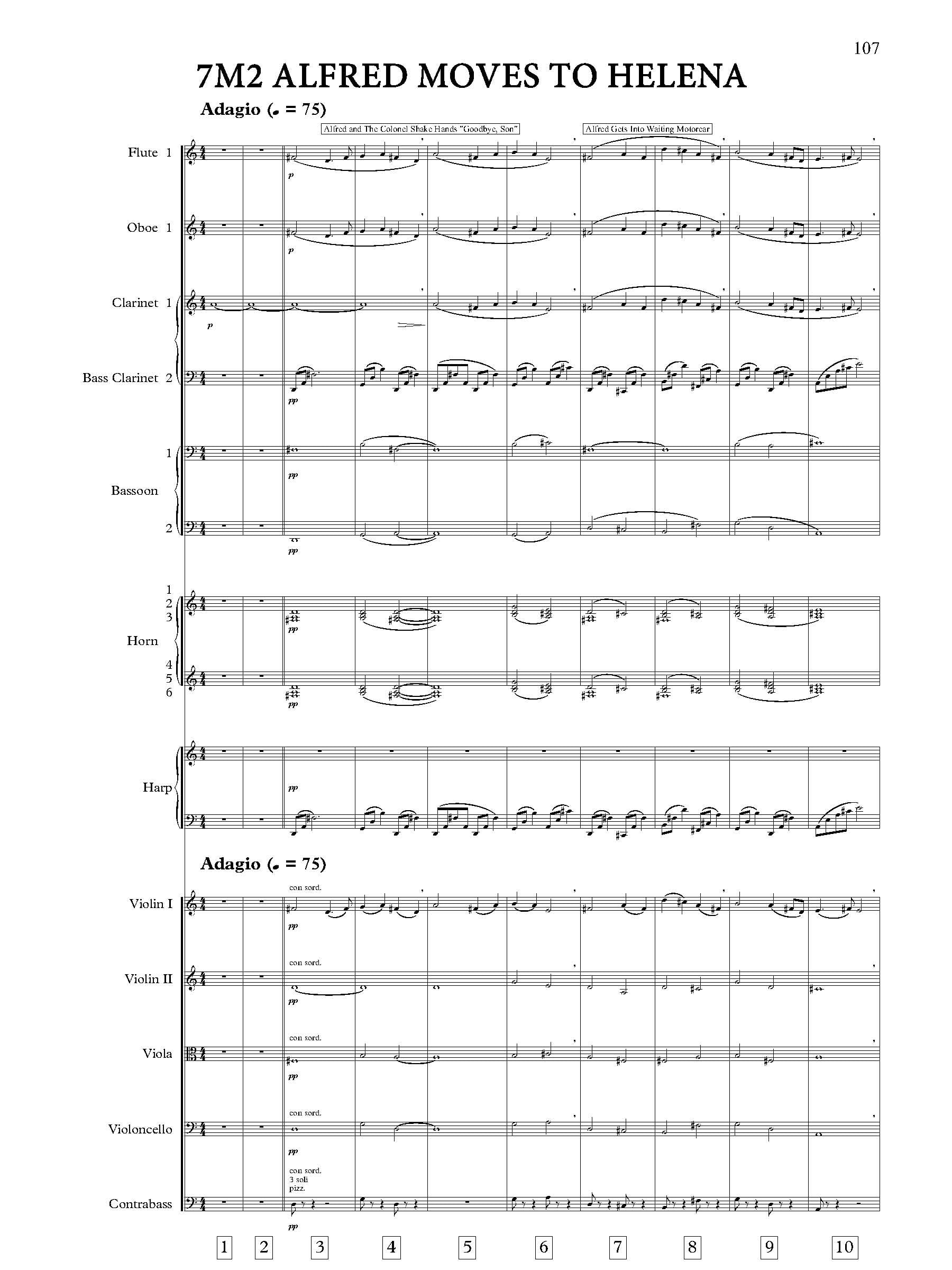 The full score, presented as concert score, is a joy to read through. Sure, some of us might need their reading glasses, but the whole thing is neat and tidy and printed on sturdy paper so you can flick through the pages without fear of tearing theme. What stands out, as with Siddall’s previous releases, is the attention to detail and all the little extra’s he puts in. The cue list shows the orchestrator for each cue, and the score itself is ‘decorated’ with descriptions (hitpoints, markers, whatever you call them) of what’s going on on-screen. It makes it so much easier to follow the music, especially for those whose music reading skills aren’t top-notch.